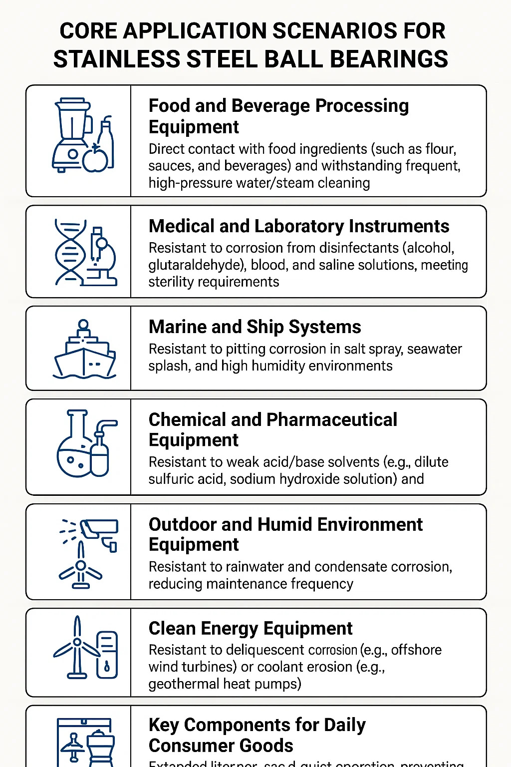سيناريوهات التطبيق الأساسية ل محامل كرة من الفولاذ المقاوم للصدأ
